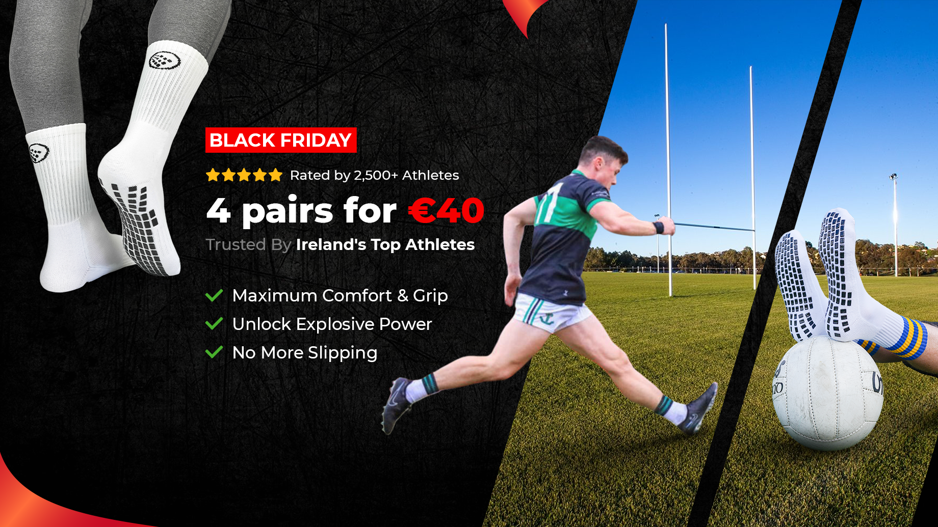 GRIPTEC creates high-performance grip socks that help players move with control and confidence. Trusted by athletes across Ireland and beyond, our socks are built for the fast pace, quick turns, and power of modern sport.